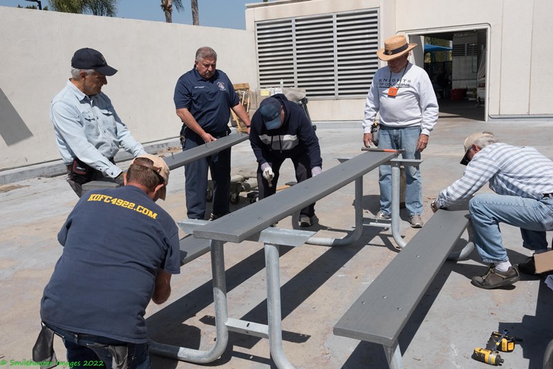 On Saturday, March 26th, fifteen of our Sir Knights and/or family members from the Christ Cathedral Assembly, assisted the Orange County Chapter in building forty-four lunch tables for the Christ Cathedral Academy Catholic School. The old tables first had to be loaded onto trucks, and were then taken to the Santiago Retreat Center.