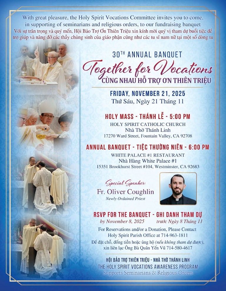 Vocations Banquet Nov 21 By adminOctober 13, 2025October 13, 2025Knights of Columbus Share this: Click to share on X (Opens in new window) X Click to share on Facebook (Opens in new window) Facebook Click to email a link to a friend (Opens in new window) Email Like this:Like Loading... Related